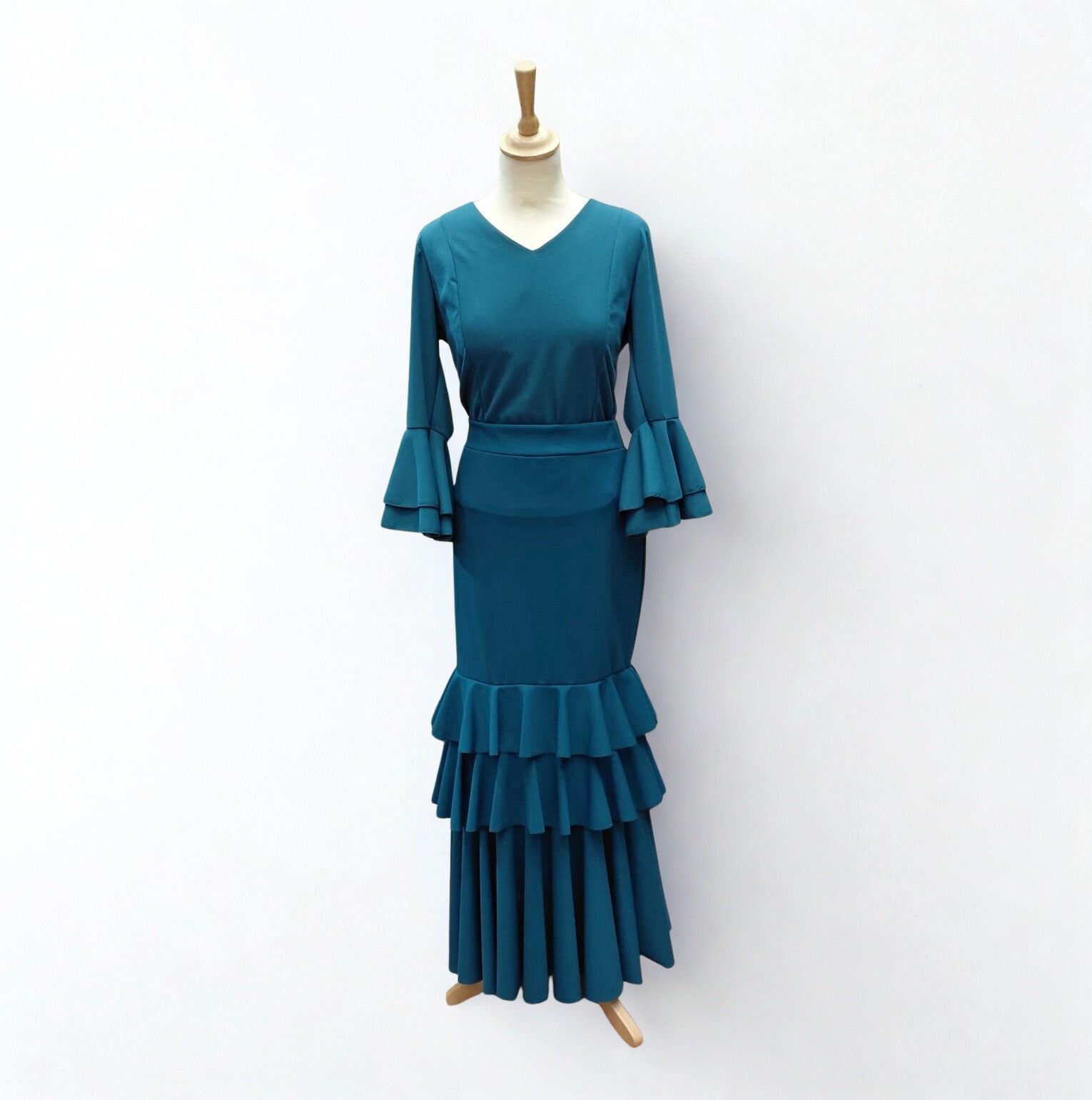 Falda de flamenco en color petróleo.