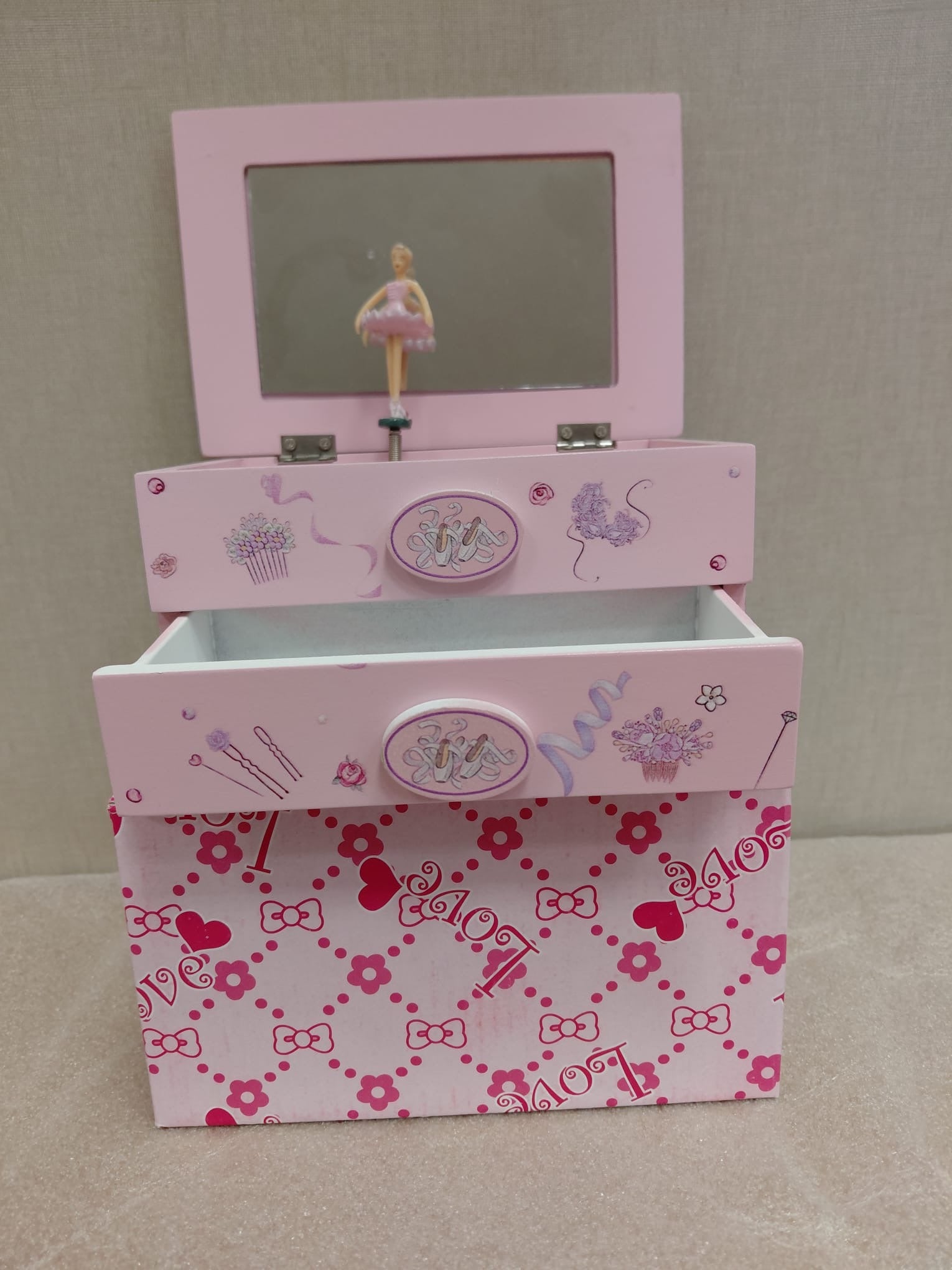 JOYERO MUSICAL ROSA DE BAILARINA CON ESPEJO